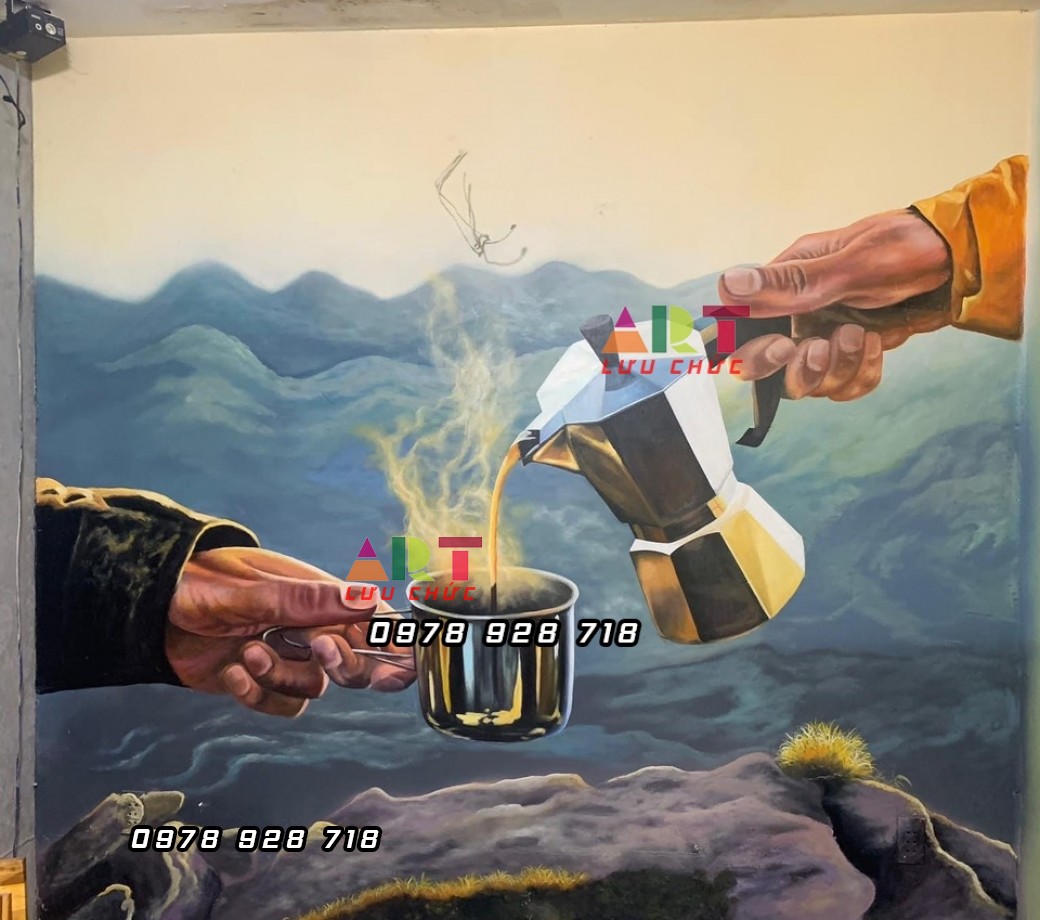 Chỉ với một chi phí nhỏ cho quán cafe của bạn nhưng chúng tôi sẵn sàng thiết kế cho một không gian, thiết kế cho quán của bạn thêm xinh đẹp, lung linh hơn, nhờ những đôi tay tài hoa của đội họa sỹ chúng tôi, chúng tôi cam kết sẽ mang lại cho quý khách có được một không gian sống động, như thật, mang lại ý nghĩa sâu sắc cho quán của bạn, để lại một nỗi nhớ cho khách hàng